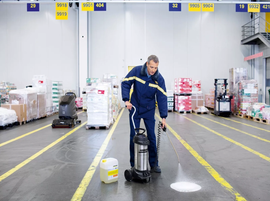 El suelo es una de las zonas donde se acumula más suciedad debido a la extensión y al tránsito constante del personal y a la maquinaria de trabajo.